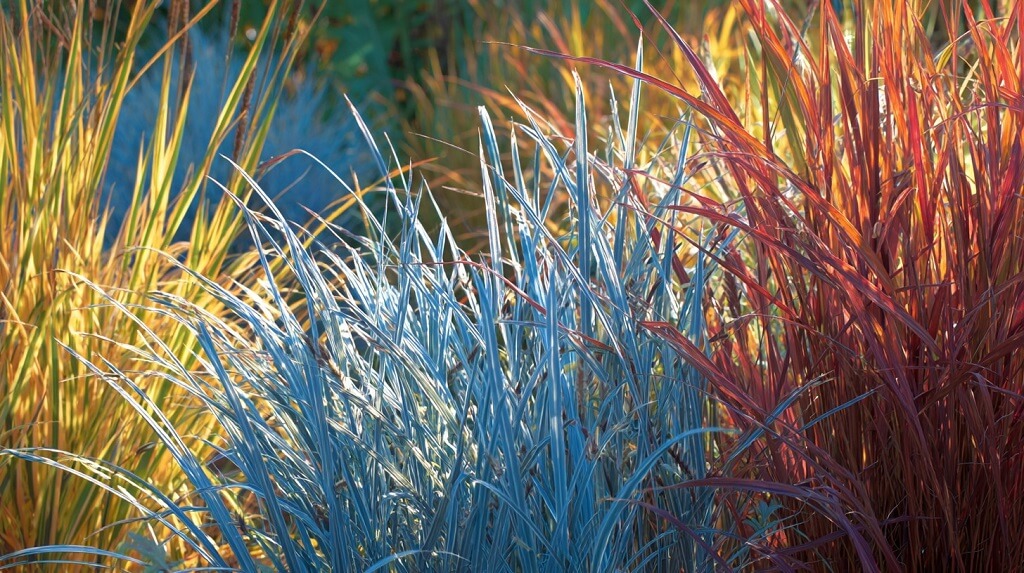 Zelene i plave nijanse ukrasnih trava, poput plave glauke (Festuca glauca) sa svojim srebrno-plavim listovima, pružaju smirujući efekat i lako se uklapaju sa većinom drugih biljaka u vrtu.