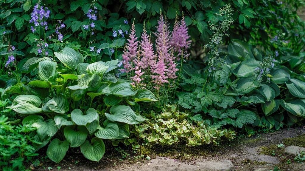 Delimična senka | Sunčeva svetlost tokom dela dana | Hosta, Astilbe |